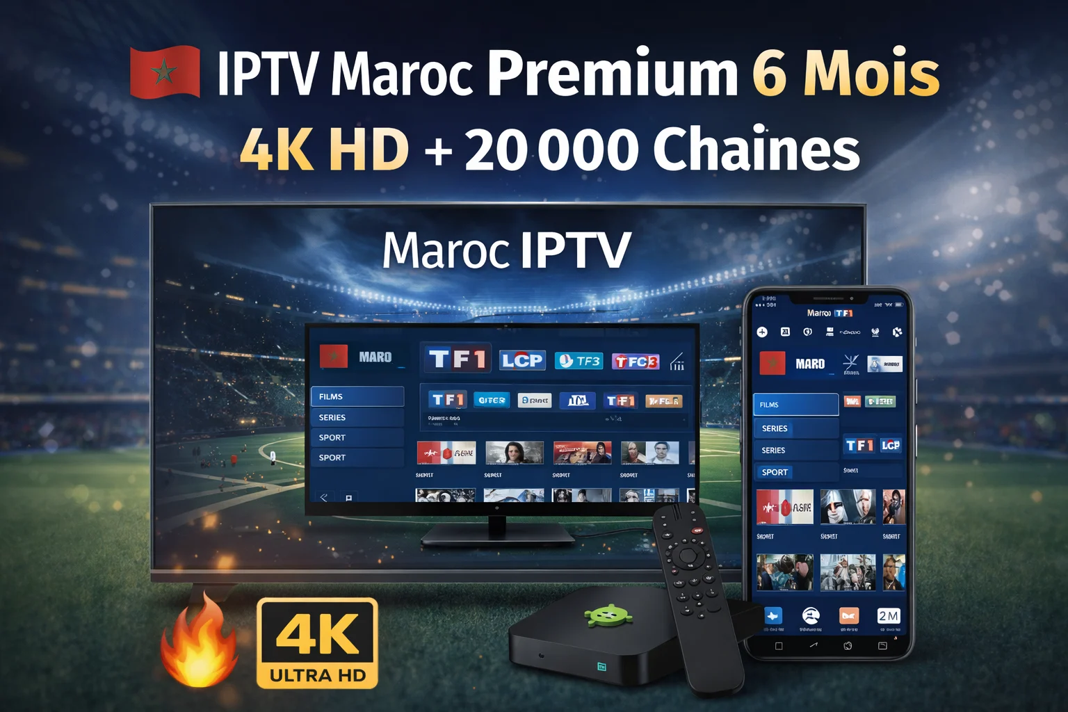 🔥 Profitez du meilleur abonnement IPTV au Maroc avec une qualité d’image exceptionnelle en 4K / HD / SD et un accès illimité à plus de 20 000 chaînes TV en direct + Films & Séries en VOD.